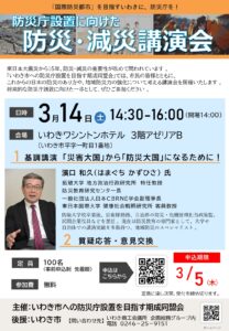 を柱とした活動にむけ、いわき市への防災庁設置を目指す期成同盟会を設立します。